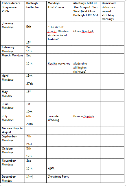 | September | 8th 22nd | Louise Nichols workshop | Christmas wreath or embellishing |